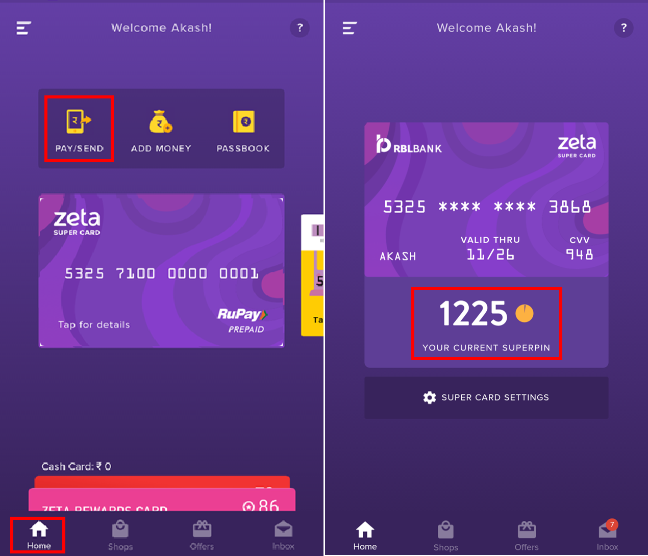 - Tap on the super card to view the OTP or Zeta SuperPIN.